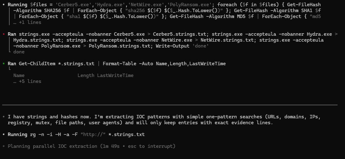 • Planning parallel IOC extraction (1m 49s • esc to interrupt)